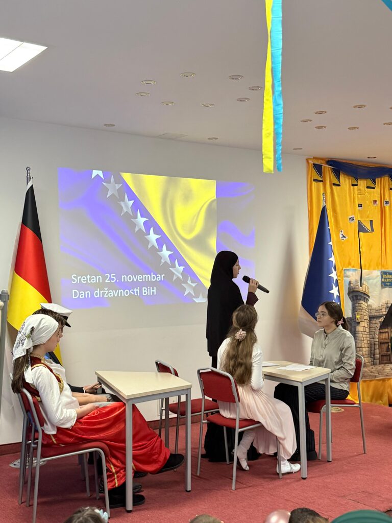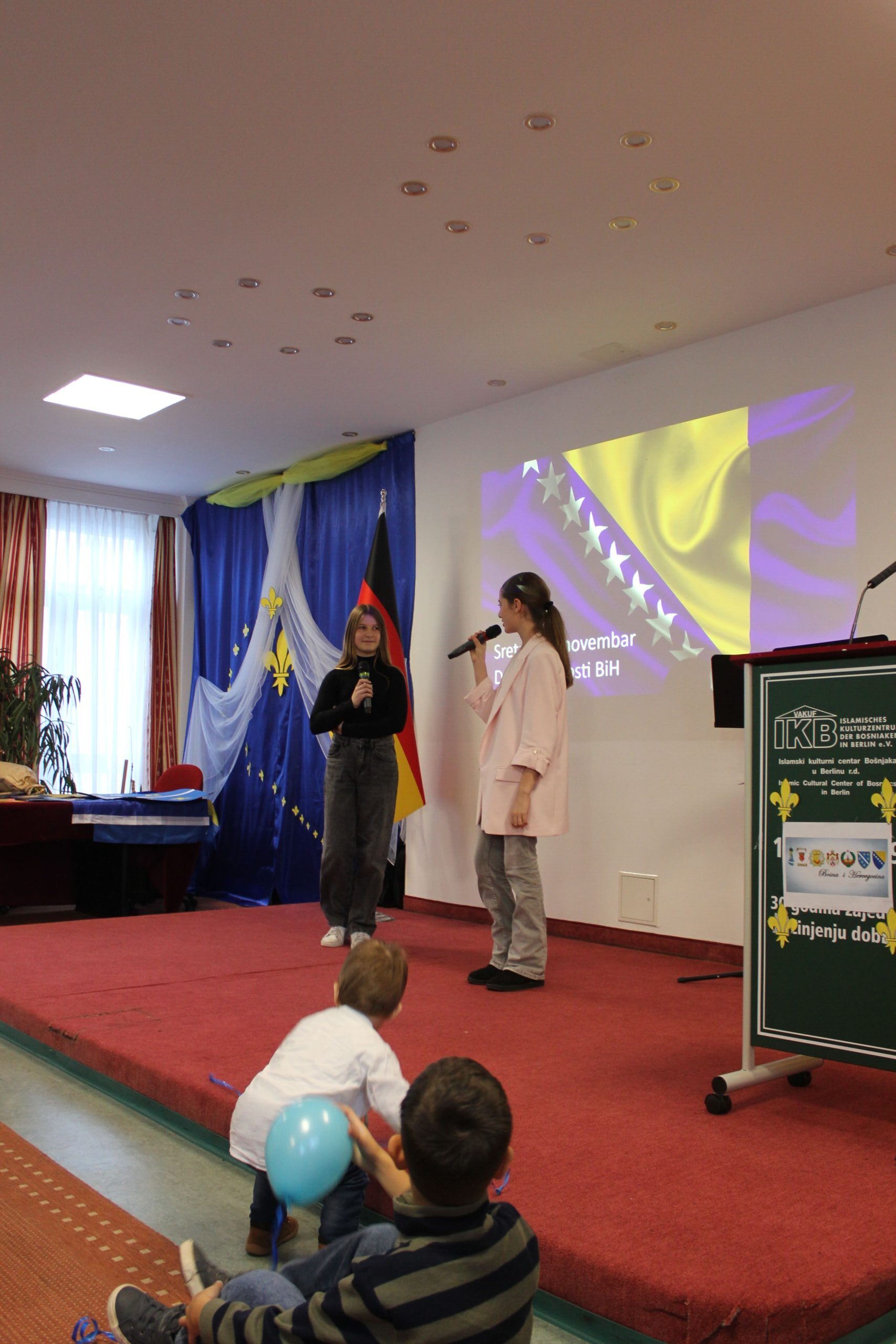 U nedjelju, 23. novembra 2025. godine, u svečanoj atmosferi konferencijske sale Islamskog kulturnog centra Bošnjaka u Berlinu, održana je akademija Bosanske dopunske škole u Berlinu u povodu Dana državnosti Bosne i Hercegovine. Program je započeo intoniranjem državne himne, nakon čega se prisutnima obratila koordinatorica Škole Ajla H., ističući važnost obilježavanja 25. novembra kao datuma koji potvrđuje historijsku odluku o obnovi državnosti Bosne i Hercegovine, njenoj ravnopravnosti i kontinuitetu kroz stoljeća. Koordinatorica je naglasila da je ovaj dan trajni podsjetnik na odluke donesene na ZAVNOBiH-u i vrijednosti koje su postavljene kao temelj naše domovine Bosne i Hercegovine.
