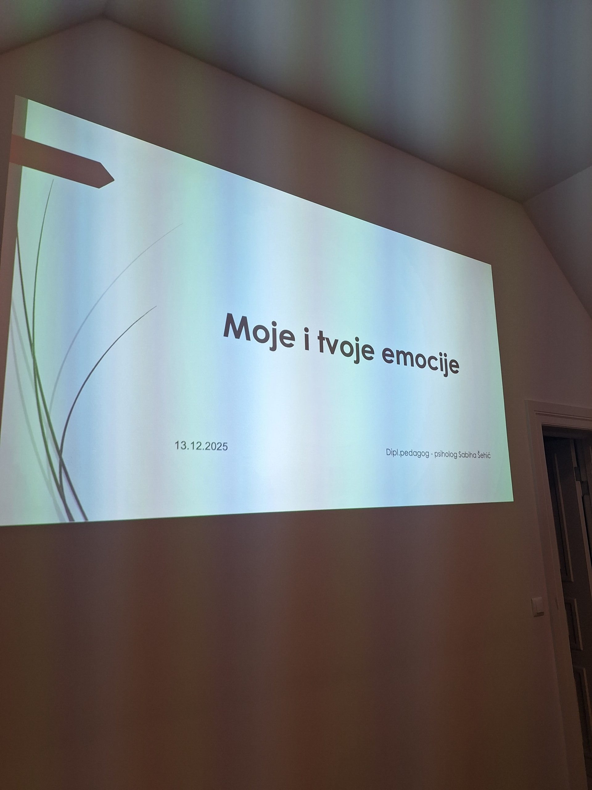 Gošća predavačica bila je dipl. ped.-psih. Sabiha Šehić, koja je kroz stručno osmišljeno, a istovremeno kreativno i interaktivno predavanje prisutne uvela u svijet emocija i njihove važnosti u svakodnevnom životu djece i porodice.