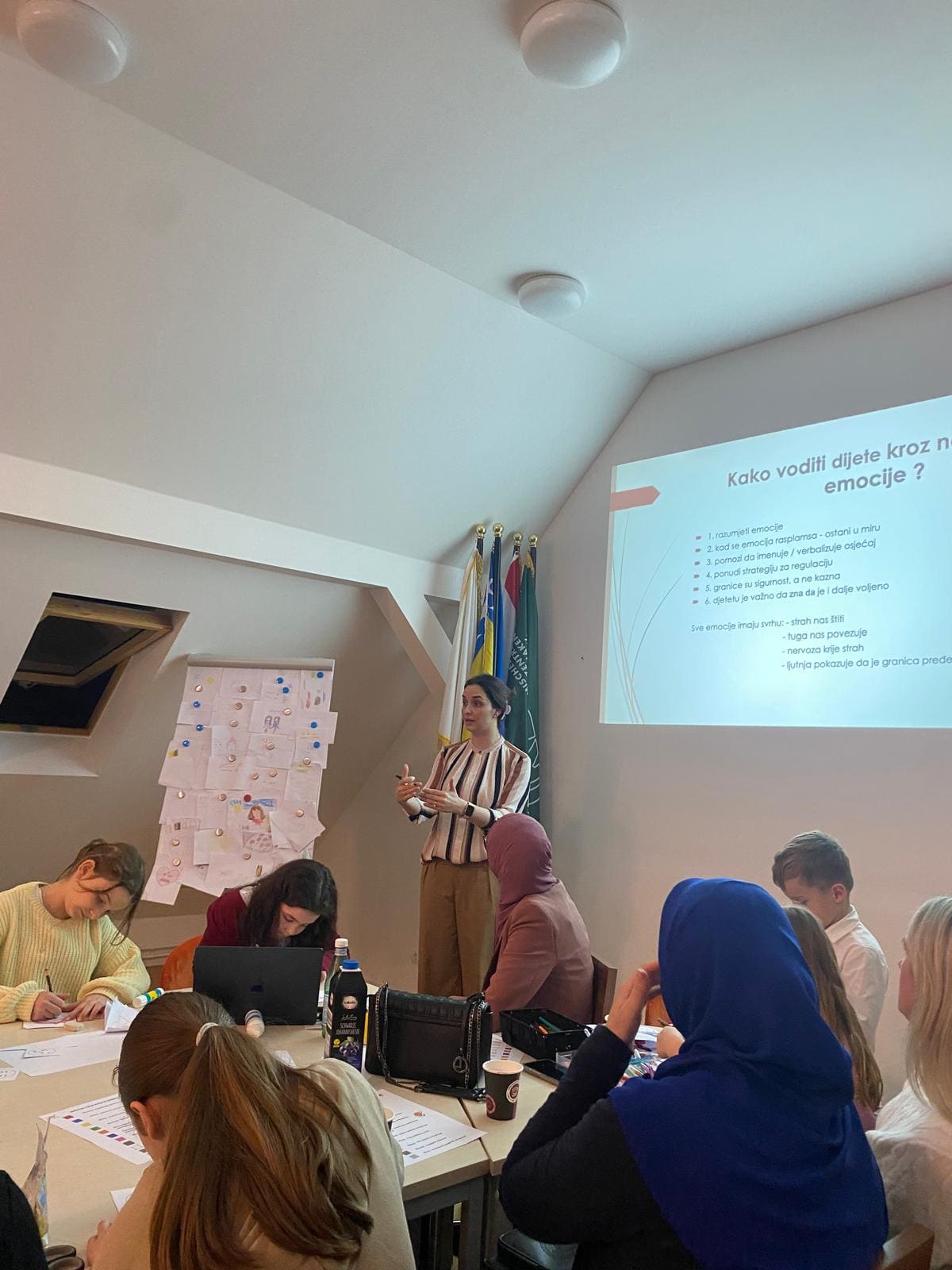 Dok su djeca oslikavala i bojila svoje trenutne emocije, majke su imale priliku da se upoznaju s različitim načinima razumijevanja i regulisanja dječijih emocija. Poseban akcenat je stavljen na jačanje roditeljske svijesti o emocionalnim potrebama djece, kao i na važnost otvorene komunikacije unutar porodice.