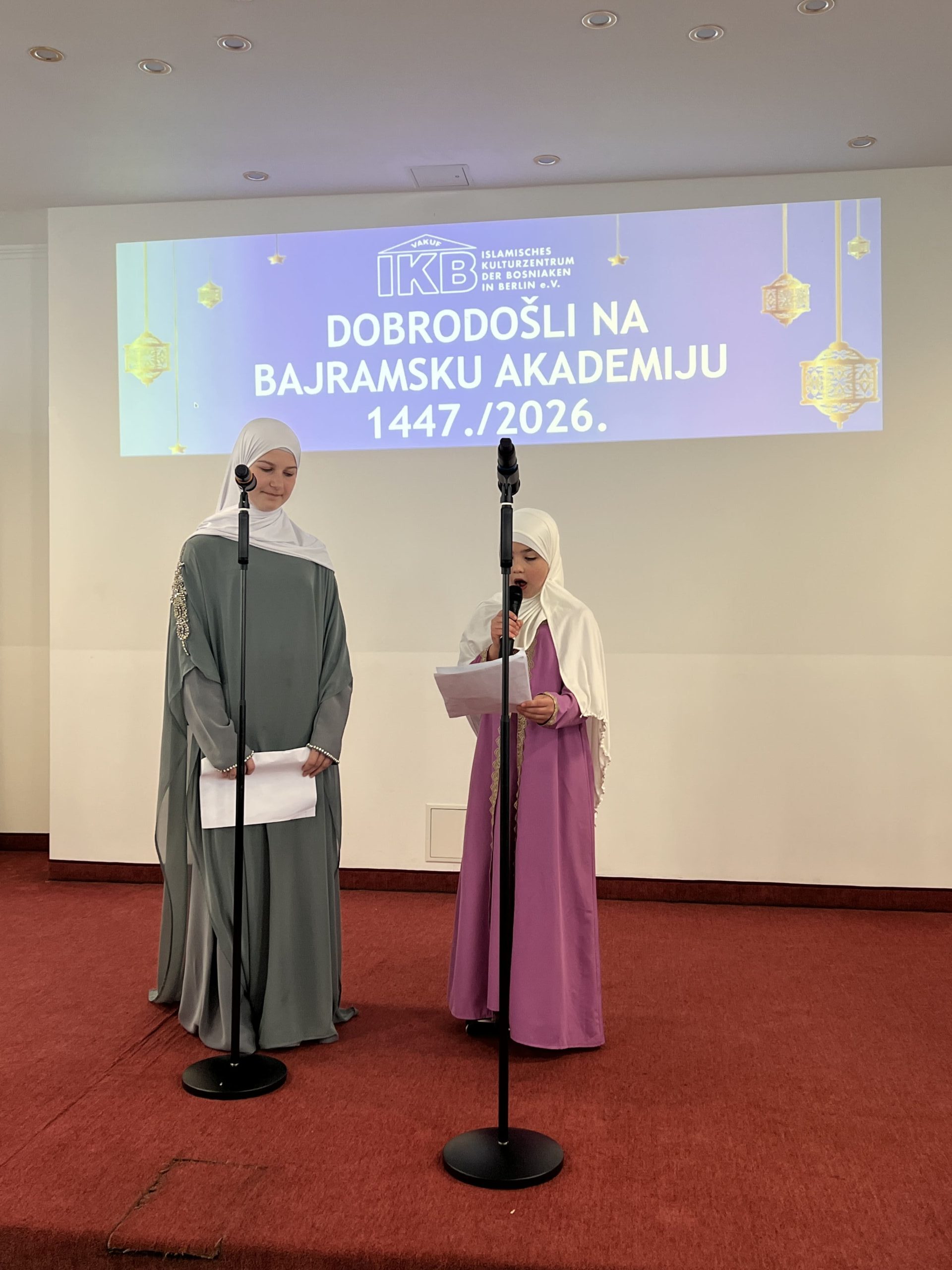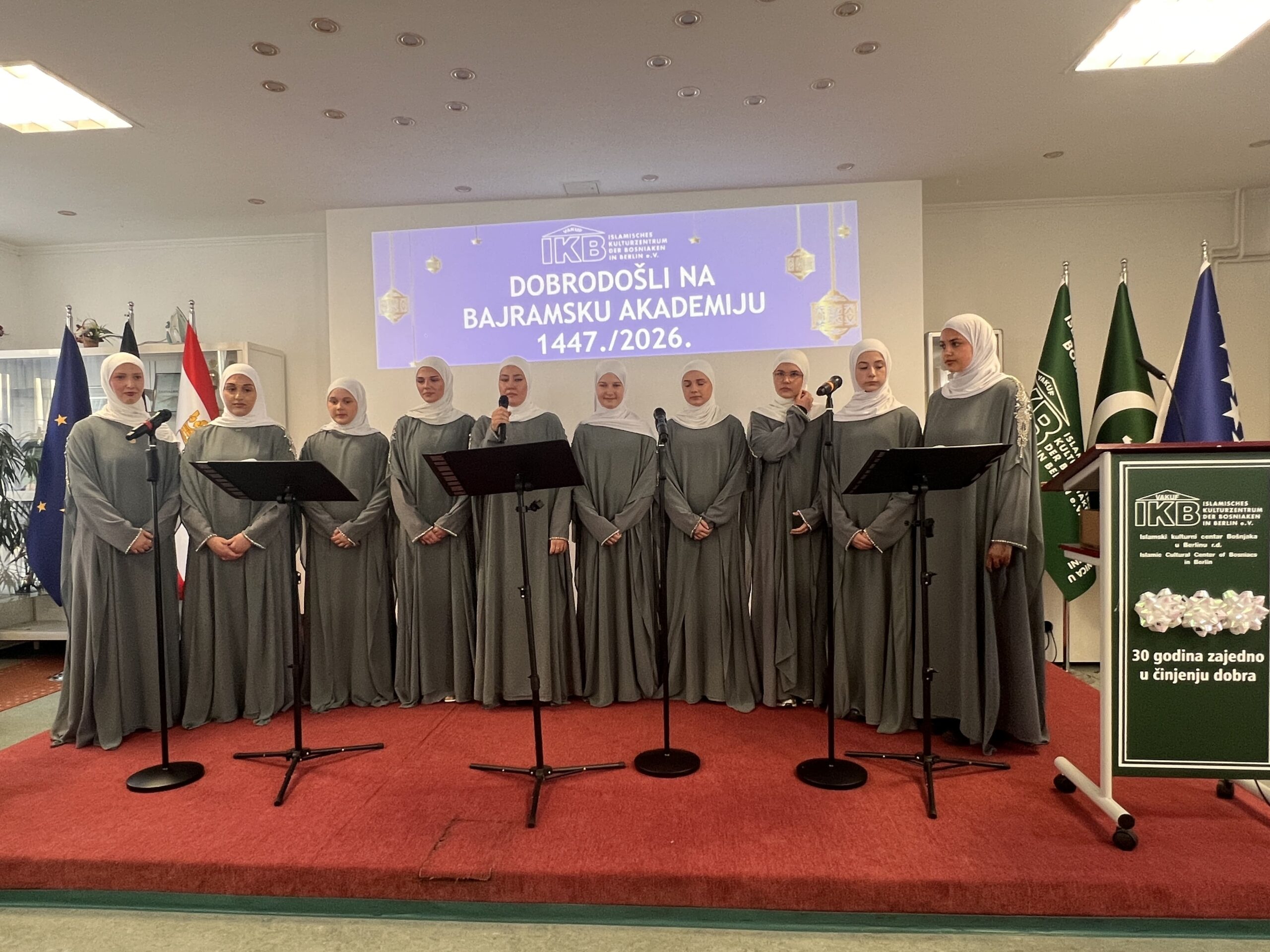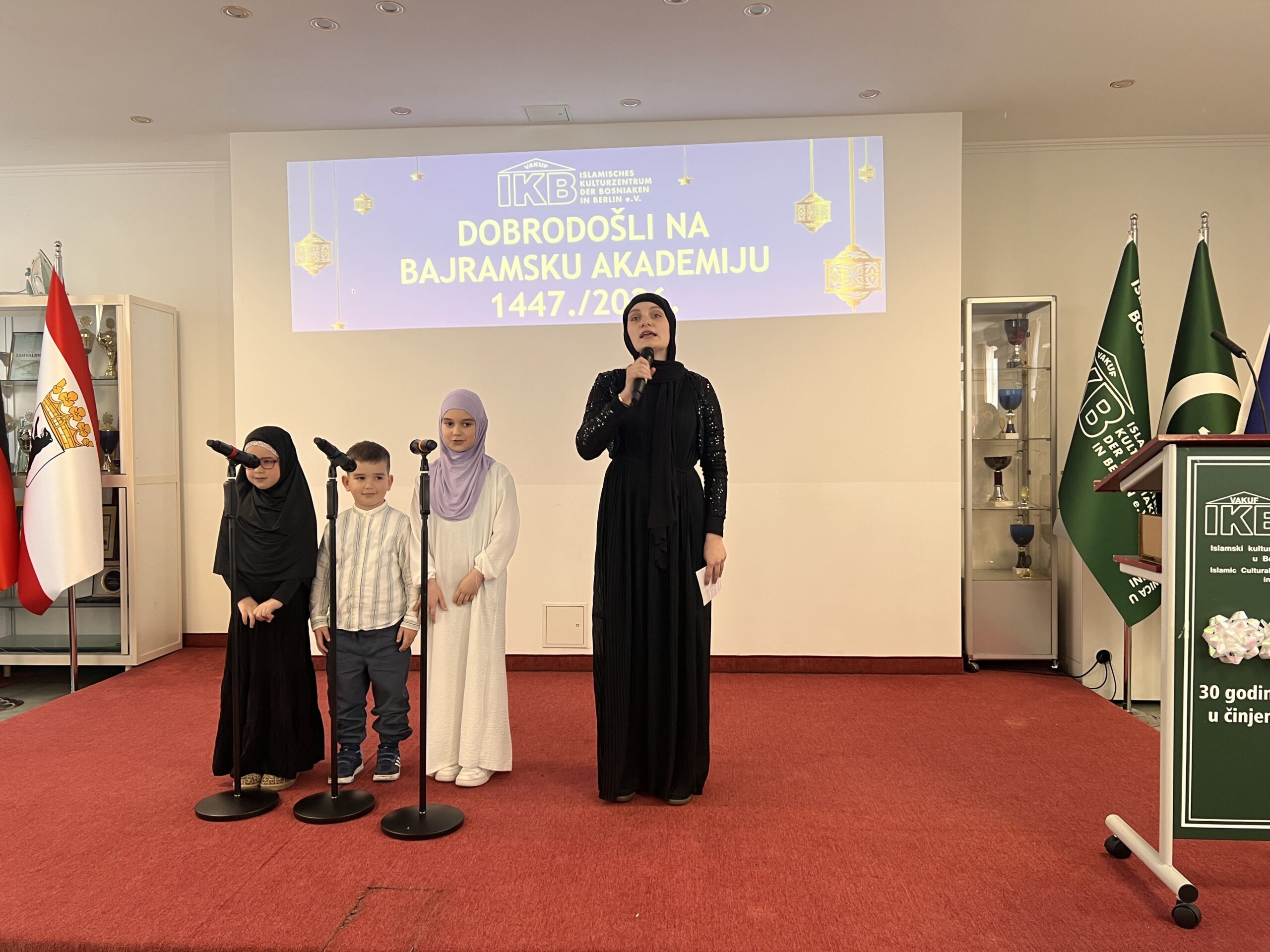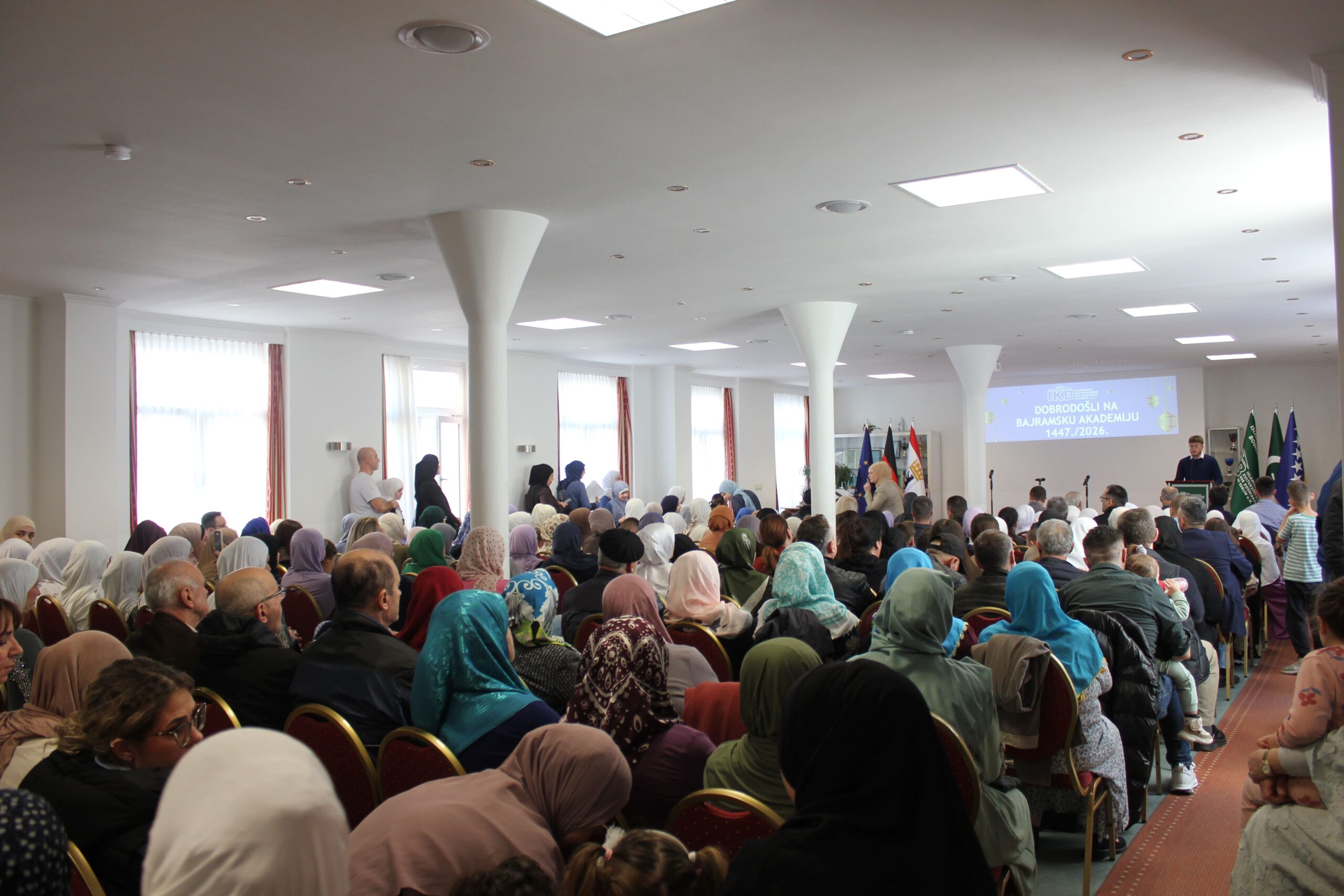 Ramazansko-bajramska akademija održana u Islamskom kulturnom centru Bošnjaka u Berlinu u nedjelju, 22. marta 2026. godine, predstavljala je svečani i dostojanstveni završetak ramazanskih aktivnosti, okupljajući veliki broj članova IKB-a, gostiju i prijatelja. Nakon dva dana bajramske radosti, ovaj događaj pružio je priliku da se u reflektivnoj atmosferi sumiraju utisci proteklog mjeseca i naglasi značaj duhovnog rasta koji je ramazan donio.
