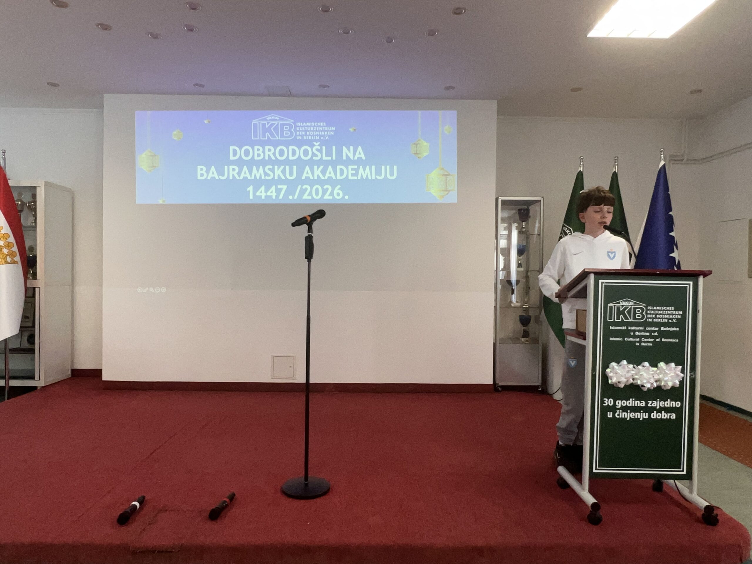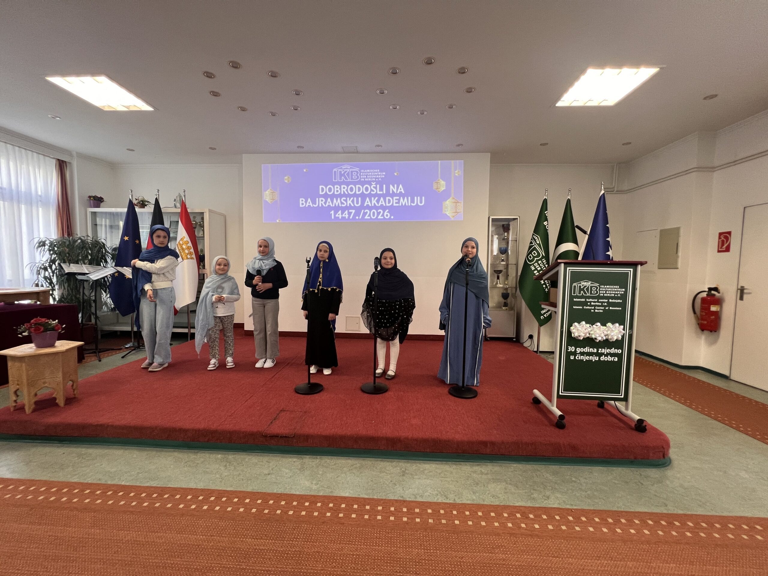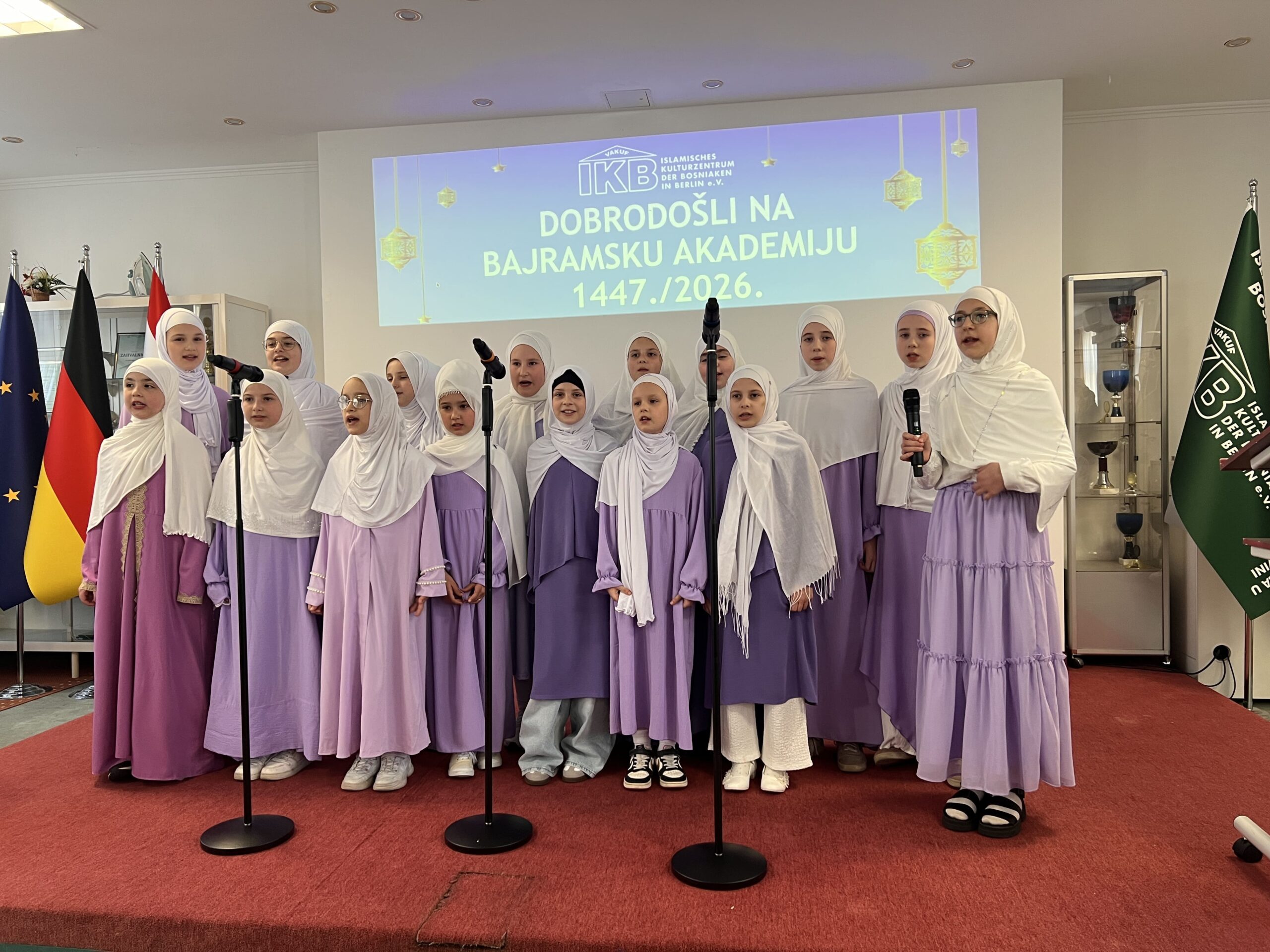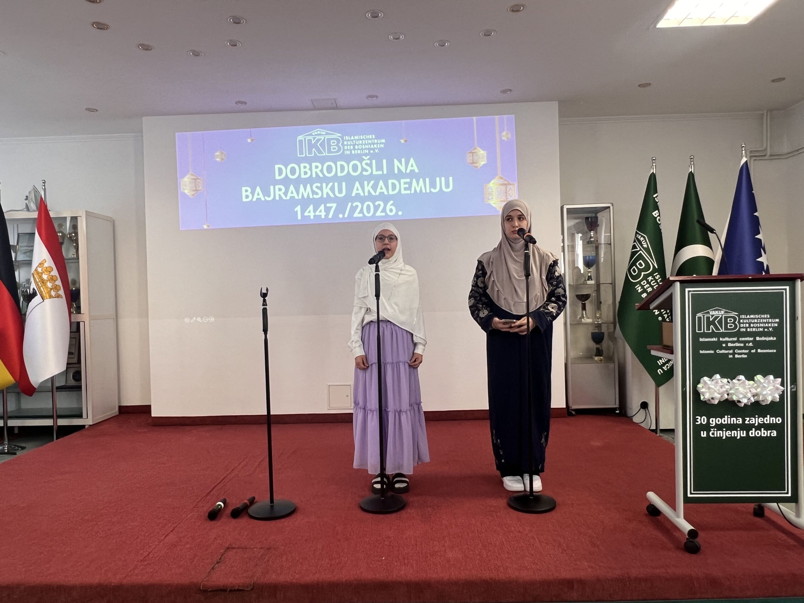 Ramazansko-bajramska akademija održana u Islamskom kulturnom centru Bošnjaka u Berlinu u nedjelju, 22. marta 2026. godine, predstavljala je svečani i dostojanstveni završetak ramazanskih aktivnosti, okupljajući veliki broj članova IKB-a, gostiju i prijatelja. Nakon dva dana bajramske radosti, ovaj događaj pružio je priliku da se u reflektivnoj atmosferi sumiraju utisci proteklog mjeseca i naglasi značaj duhovnog rasta koji je ramazan donio.