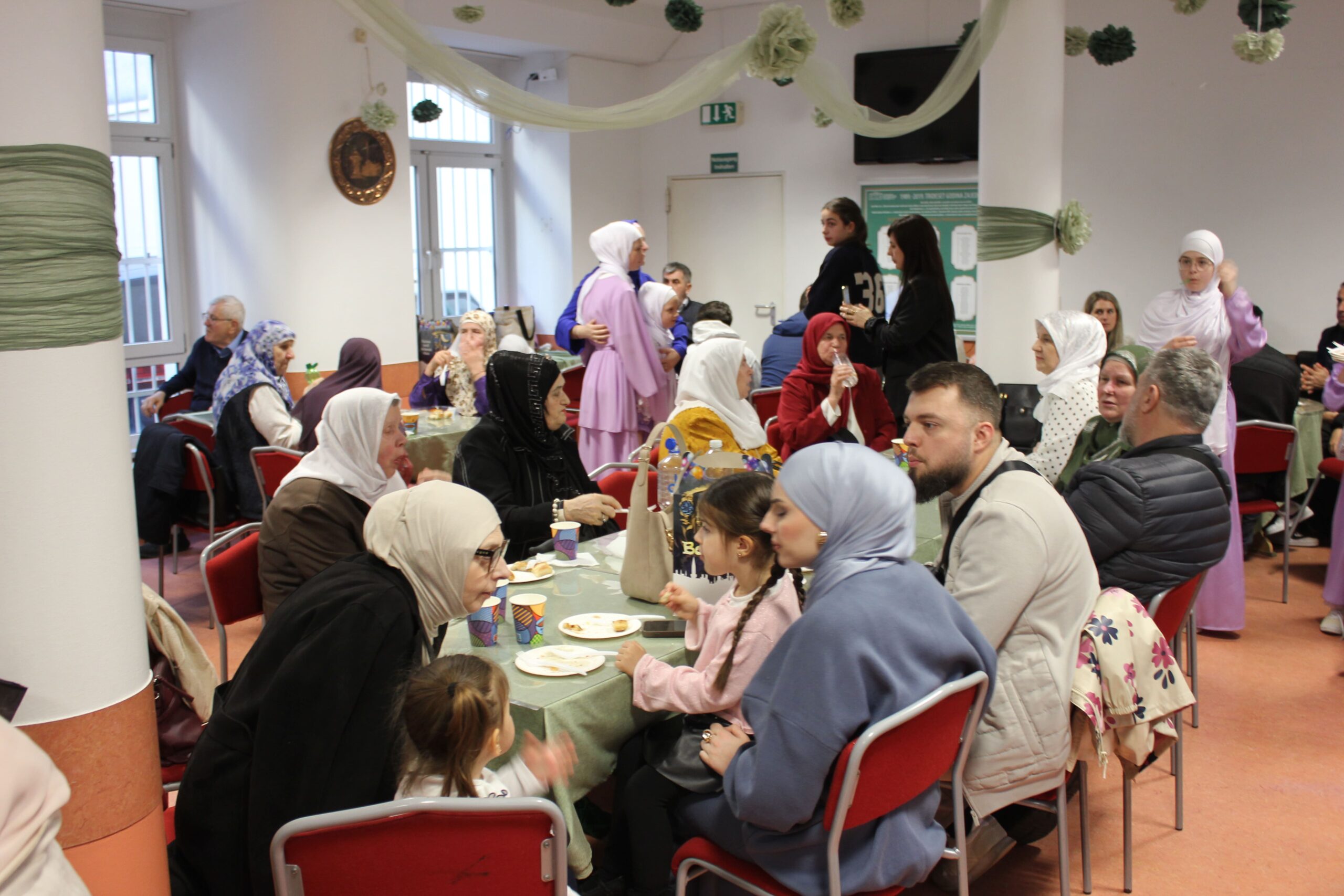 Već pri ulasku u prostorije Centra mogla se osjetiti posebna svečanost. Sala je bila prigodno ukrašena, a organizatori su se pobrinuli da svaki detalj odiše toplinom i pažnjom. Na licima prisutnih vidjela se radost susreta, ali i određena doza ponosa zbog uspješno realiziranih brojnih aktivnosti tokom ramazana – od zajedničkih iftara, teravih-namaza, do edukativnih programa za djecu i omladinu.
